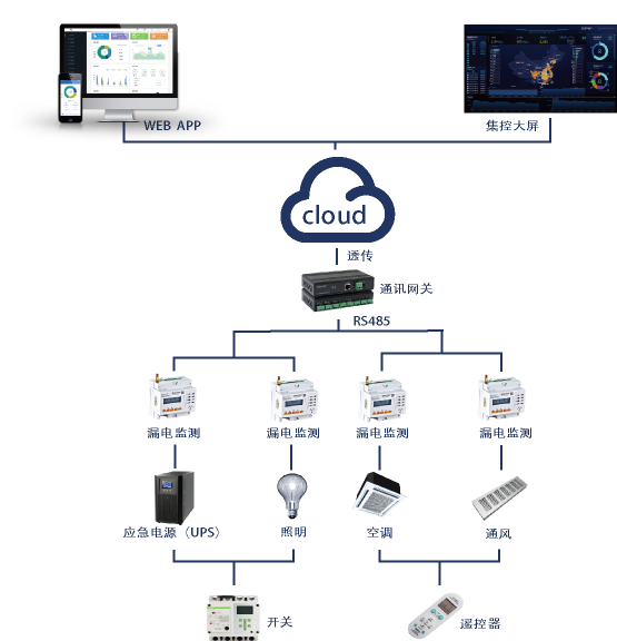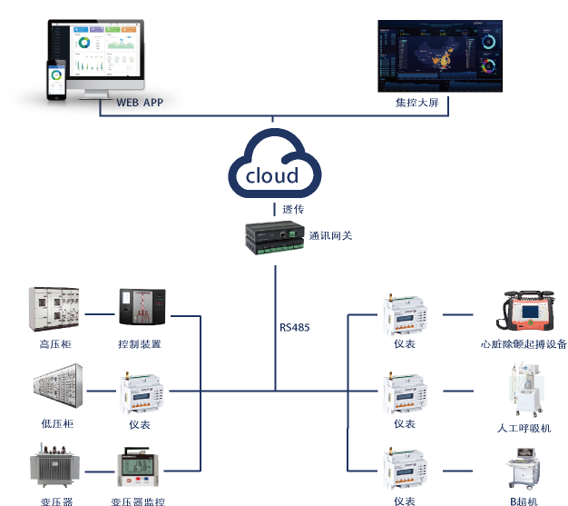通过智能仪表采集各种电参量,从而实现能耗的统计与分析,各电参量以及电能质量的实时监控,设备的过载、过压、缺相故障监控等。
