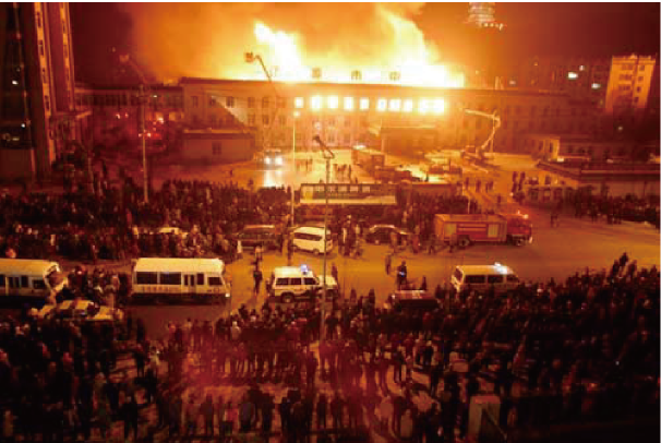 2005年12月15日16时30分左右,吉林省辽源市中心医院发生火灾,致使38人死亡。造成这起火灾的直接原因是医院配电室内供电电缆短路引燃可燃物所致。